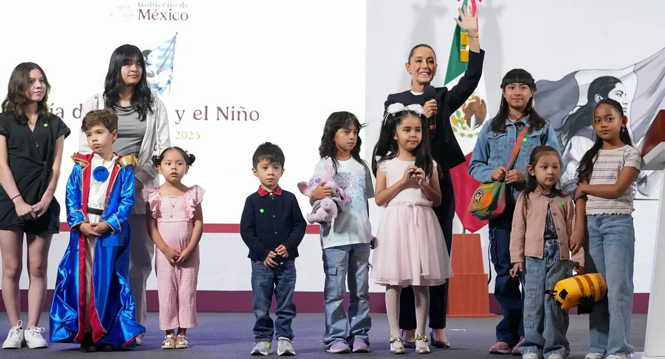 Durante la conferencia matutina, 11 niños y niñas, hijos de periodistas, participaron simbólicamente como representantes de las infancias mexicanas. Sheinbaum los presentó uno a uno, reforzando su mensaje:
